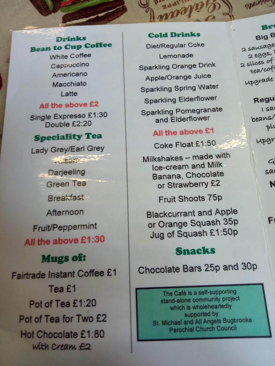 Bugbrooke Community Cafe Menu